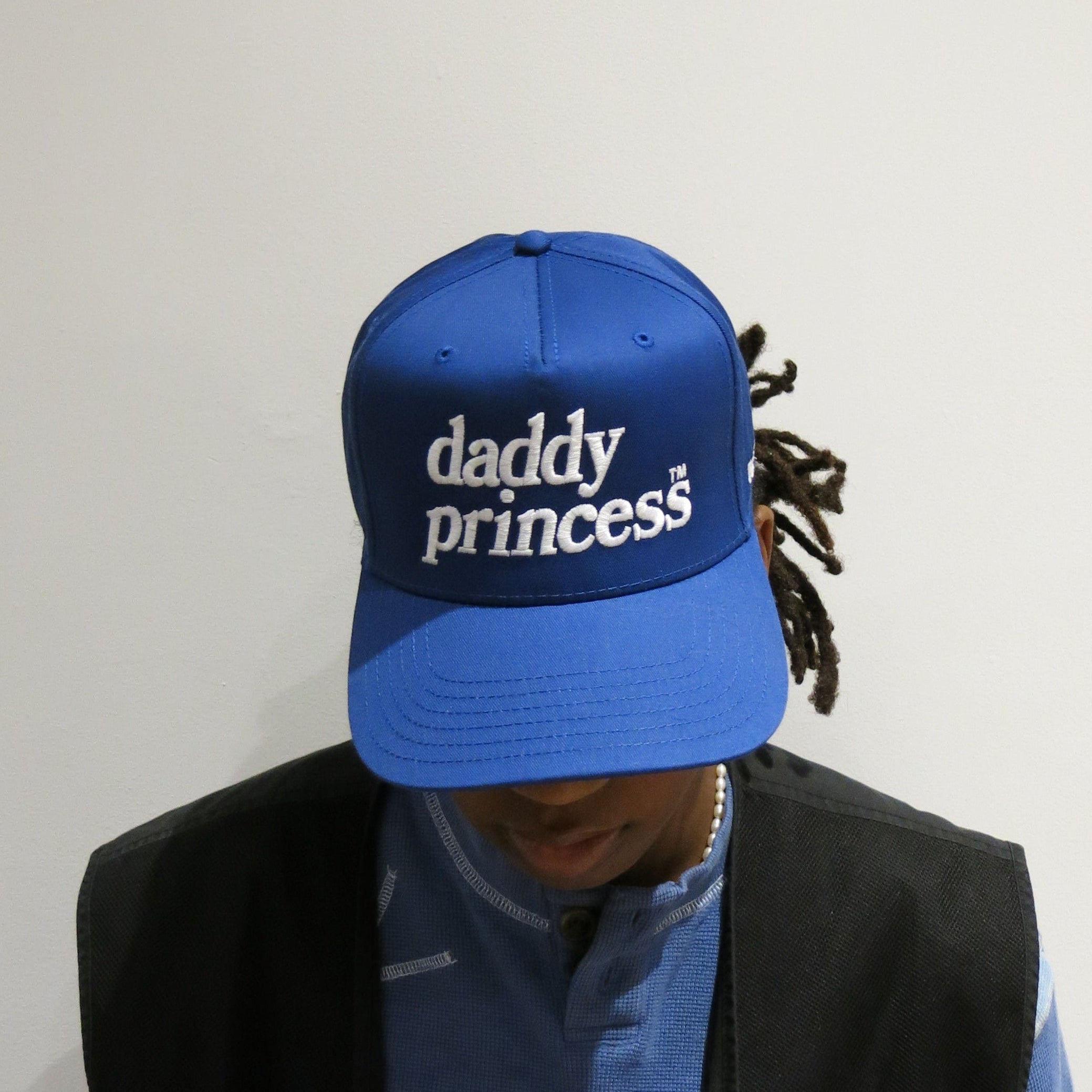 In collaboration with TimaLikesMusic, we created an A-Frame hat with her signature DADDY PRINCESS design in black, blue, and pink.